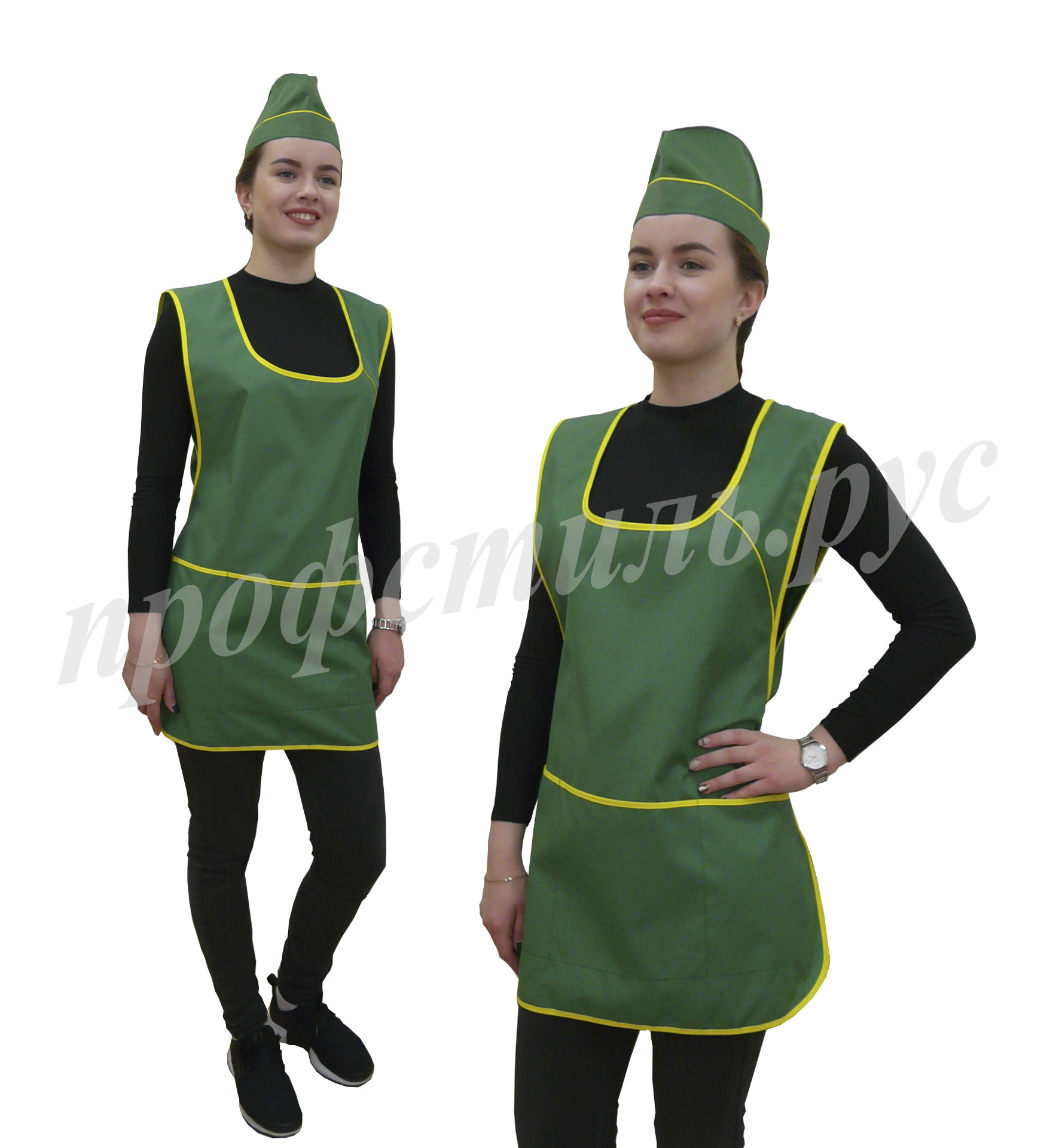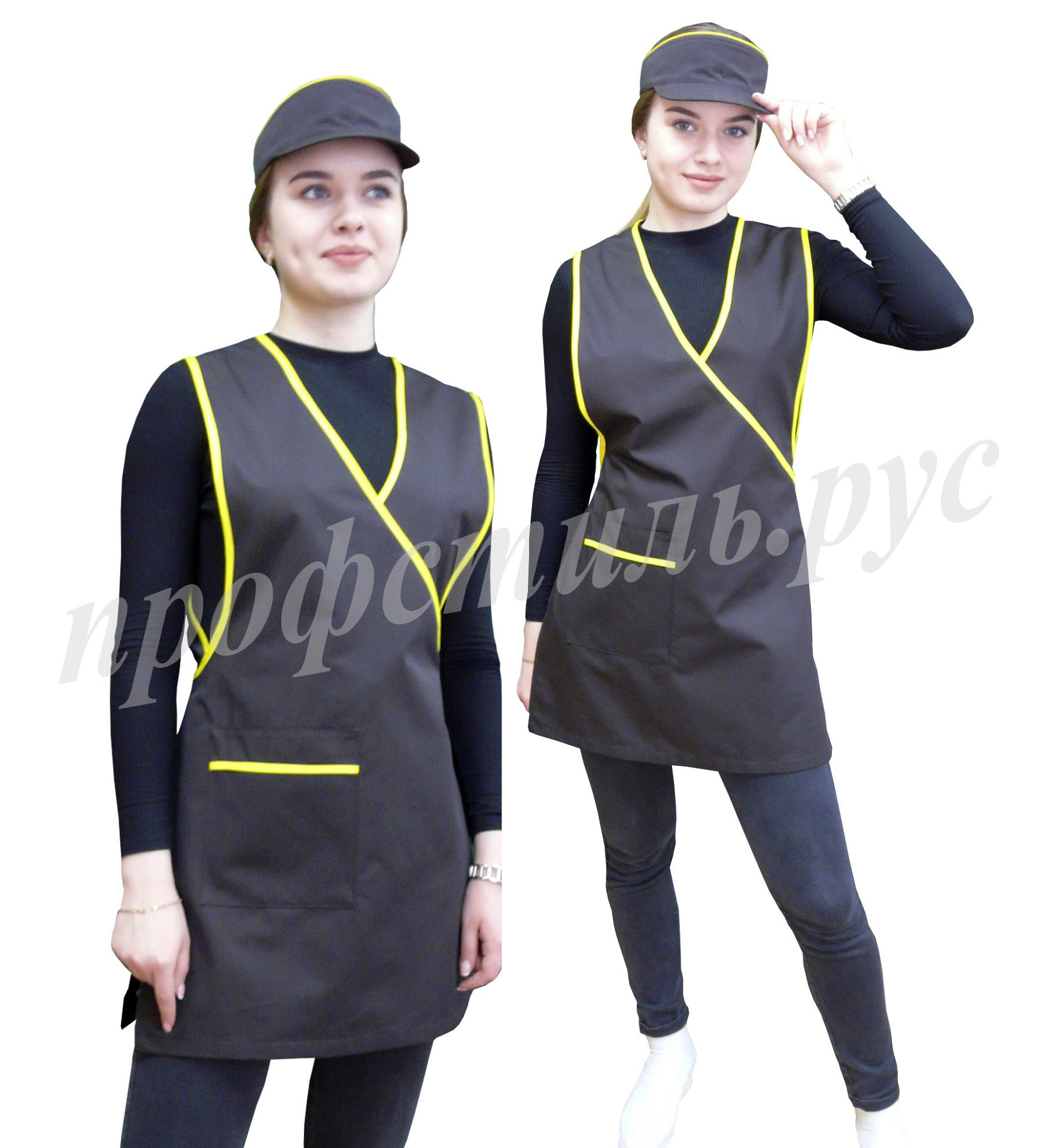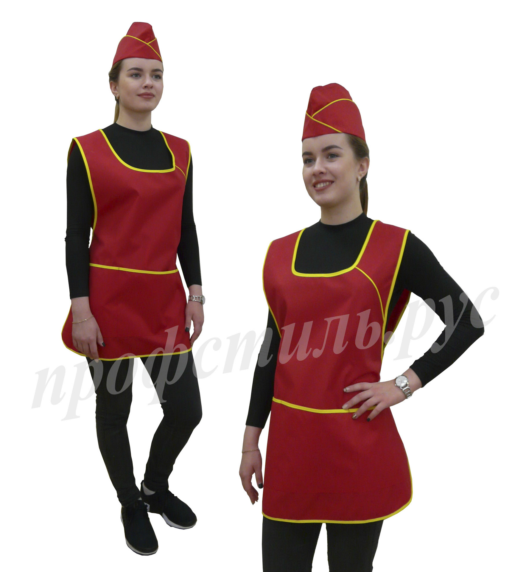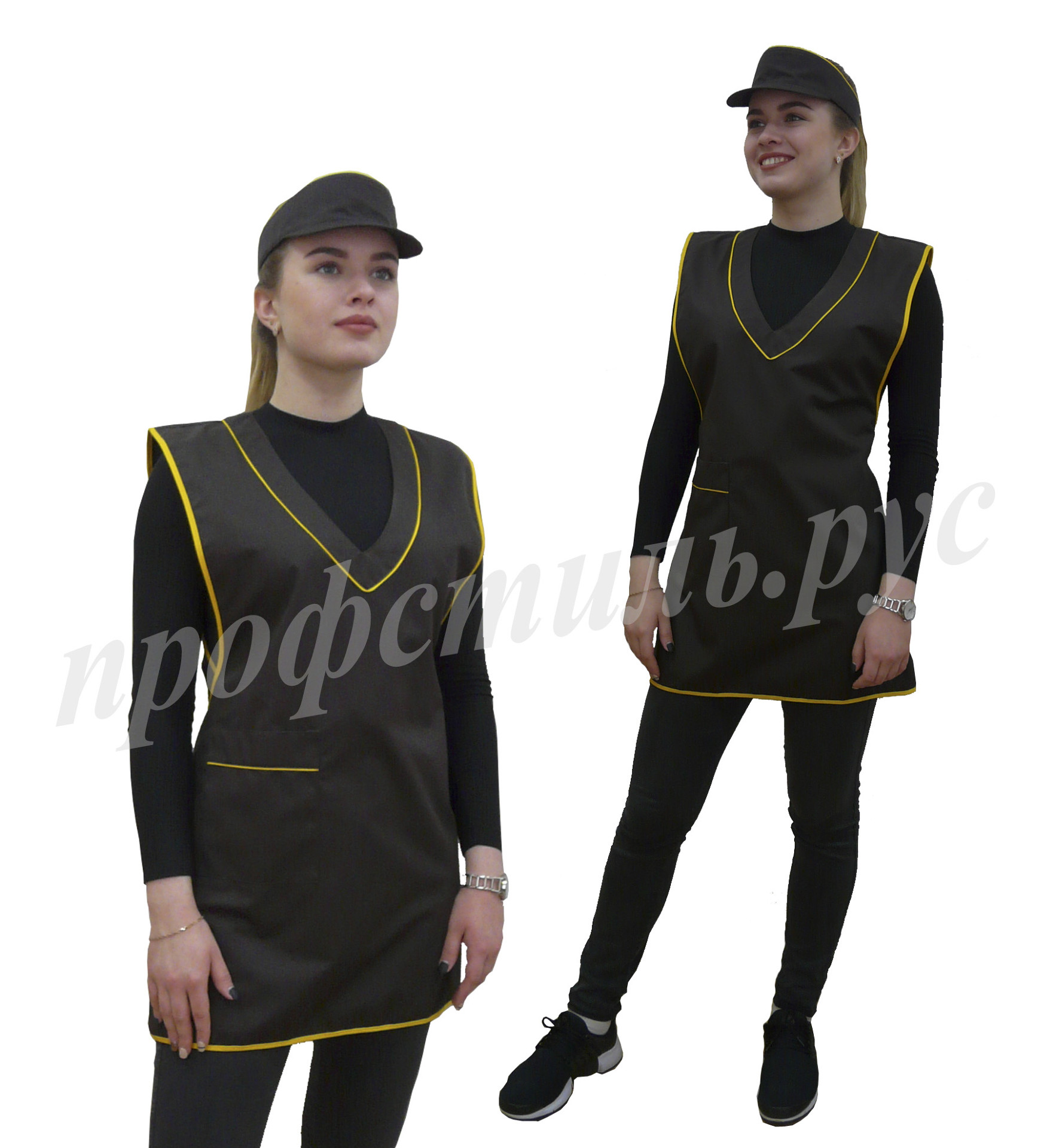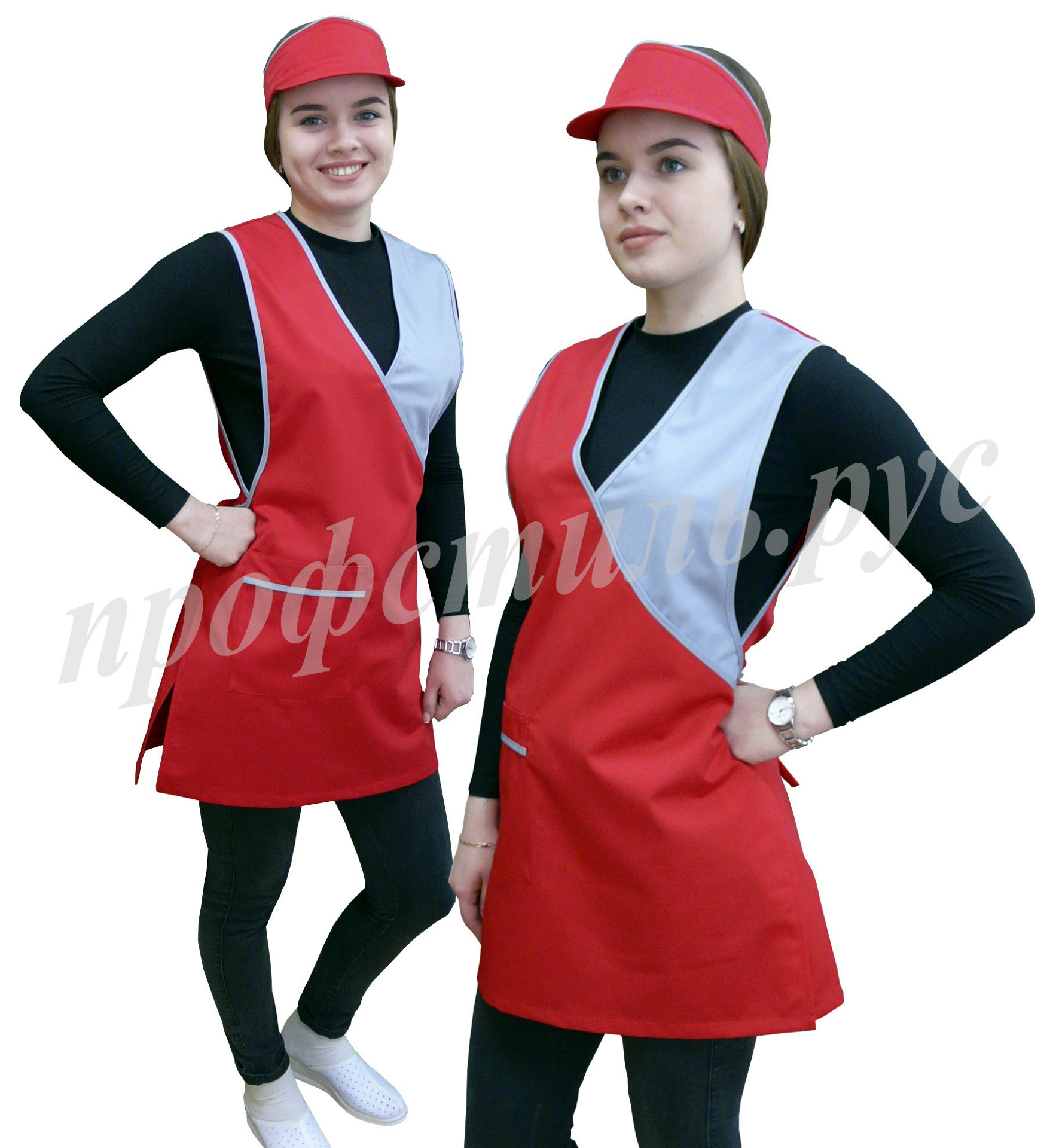Наиболее популярная форма профессиональной одежды для работников торговли, сферы обслуживания-фартук. Простой и удобный в использовании, допускает отклонения в размерном ряде. На фартук хорошо наносится логотип. Широкий выбор модельного ряда. Хорошо сочетается с головными уборами-пилоткой, козырьком. Некоторые модели дополняются брюками, футболками.
