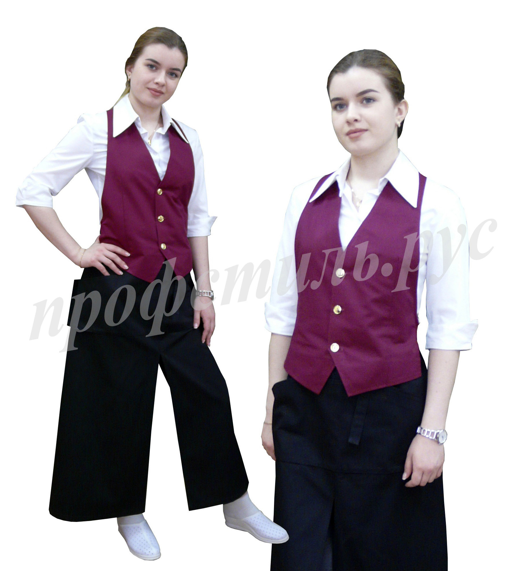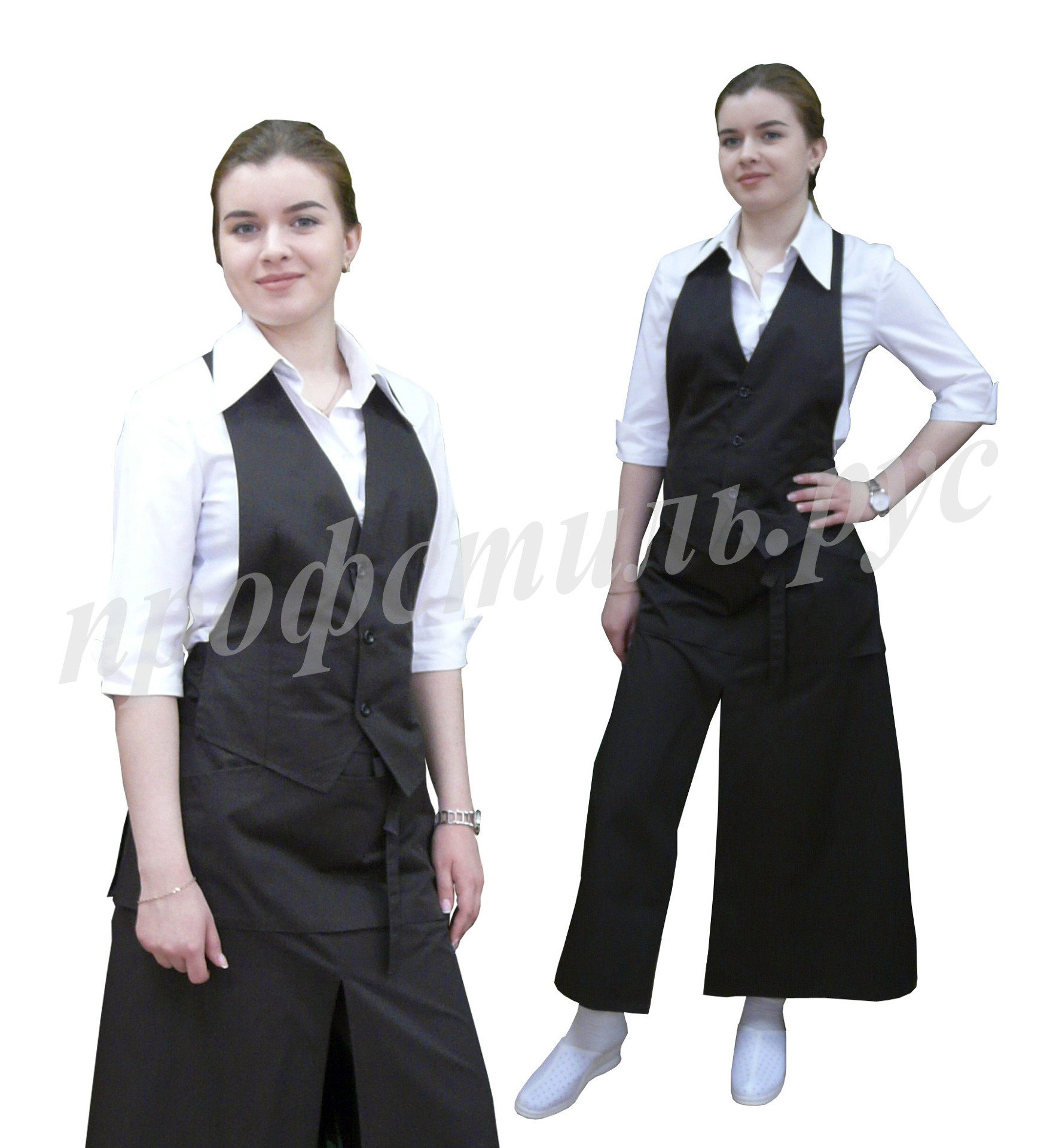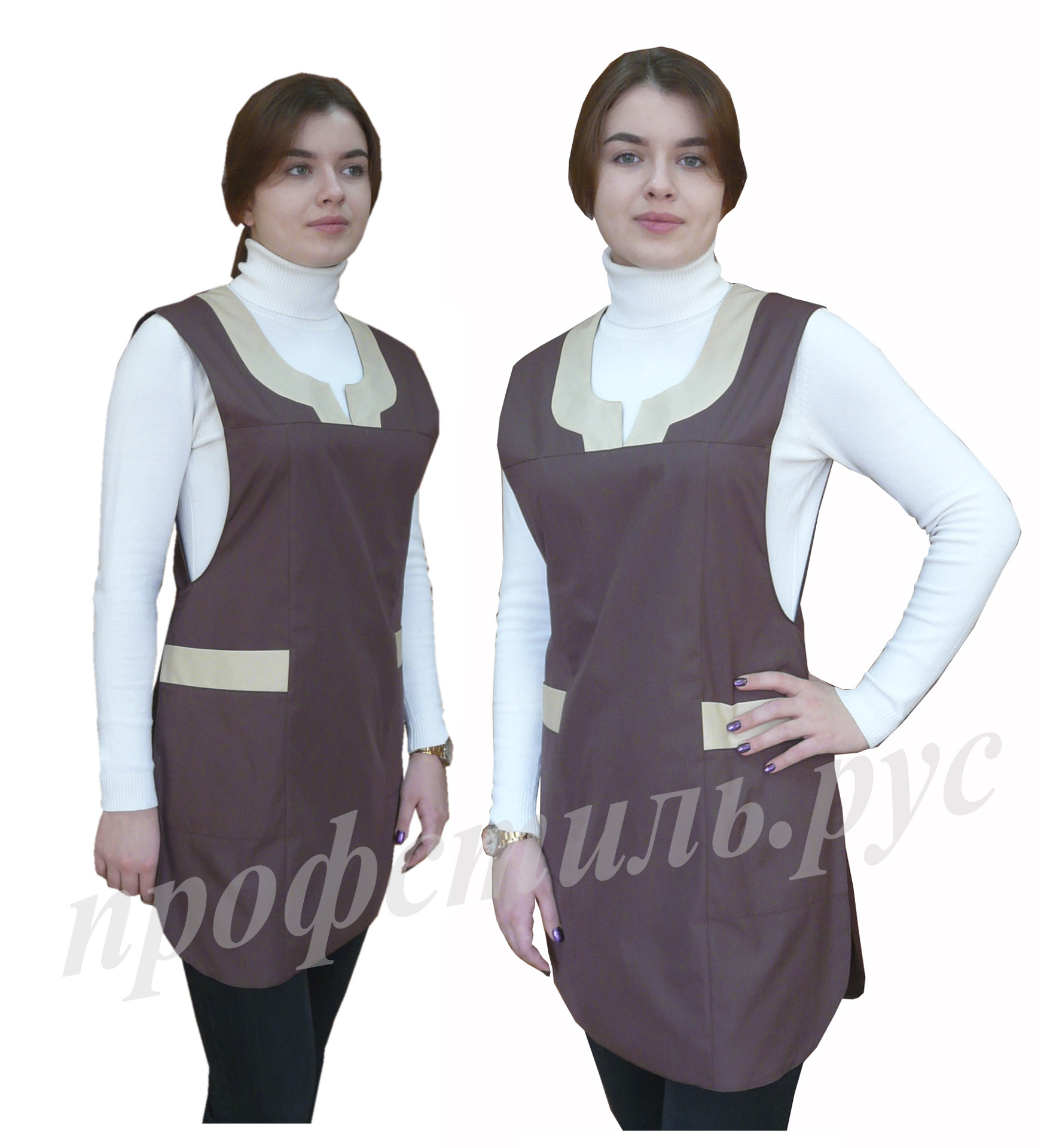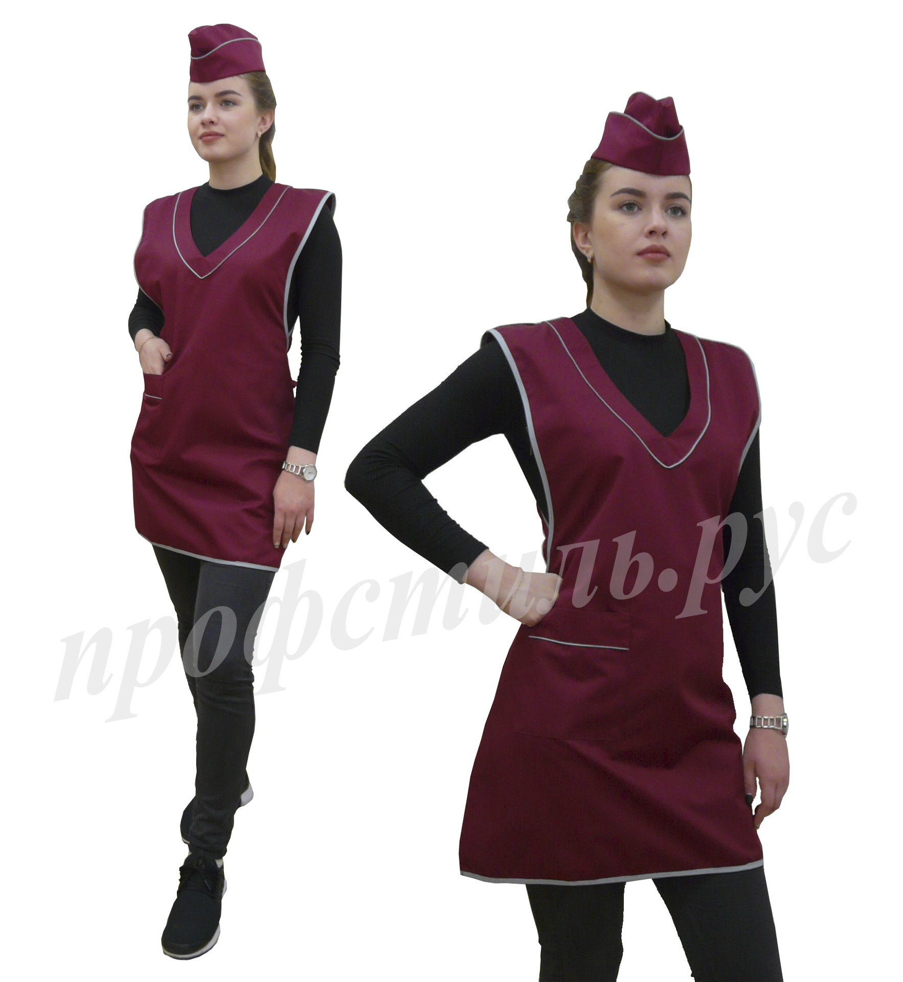 Наиболее популярная форма профессиональной одежды для работников торговли, сферы обслуживания-фартук. Простой и удобный в использовании, допускает отклонения в размерном ряде. На фартук хорошо наносится логотип. Широкий выбор модельного ряда. Хорошо сочетается с головными уборами-пилоткой, козырьком. Некоторые модели дополняются брюками, футболками.