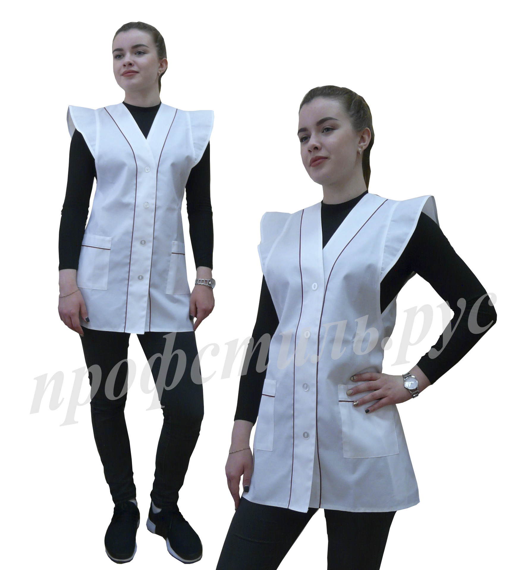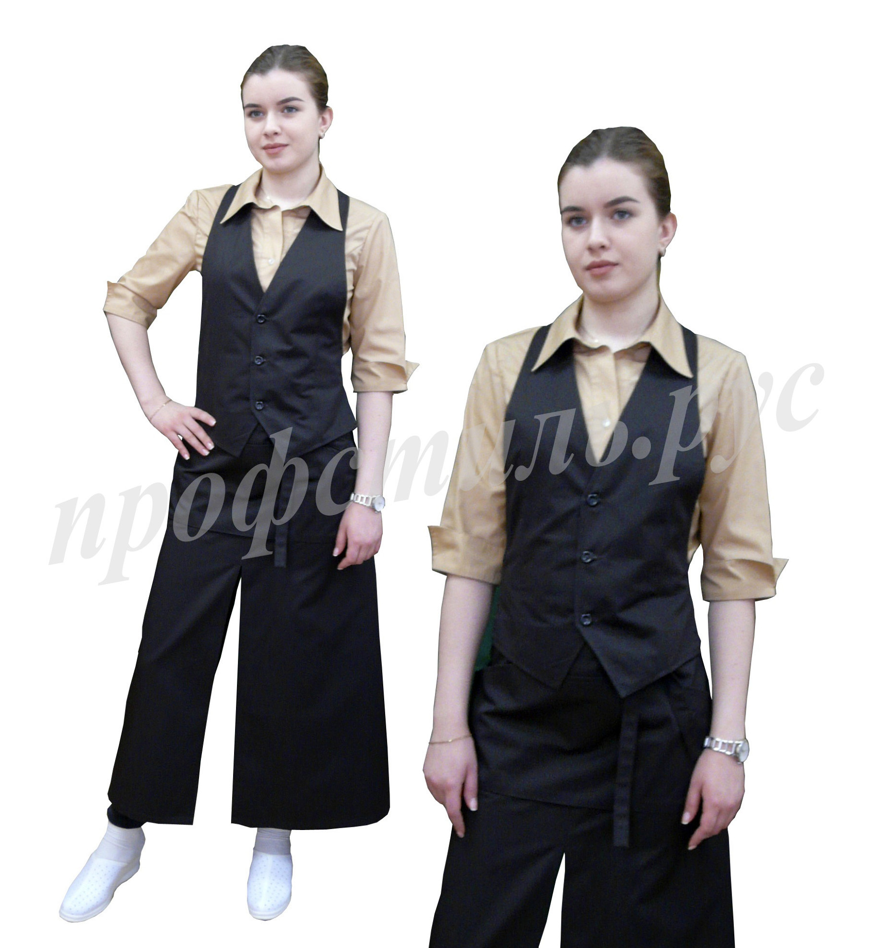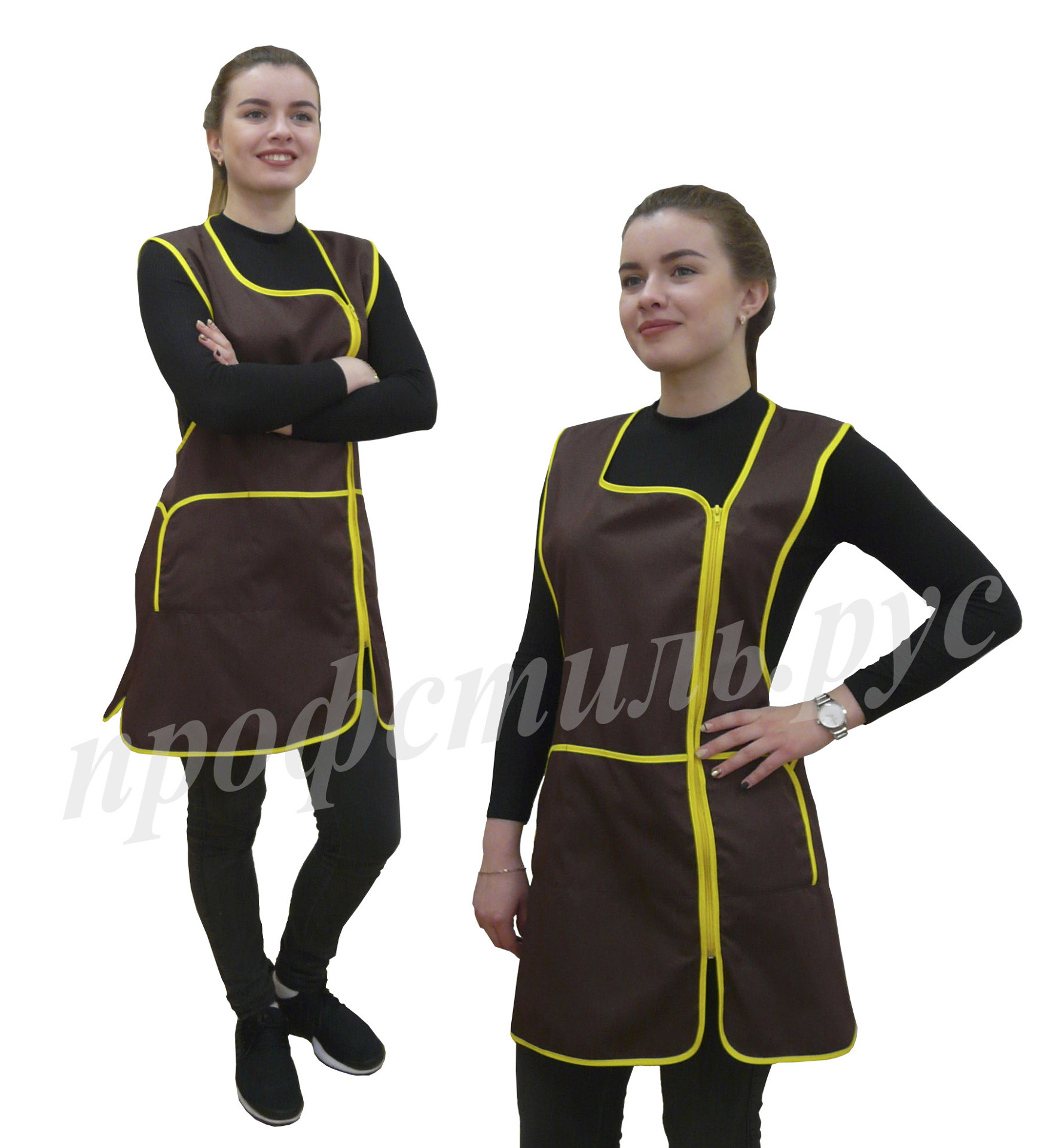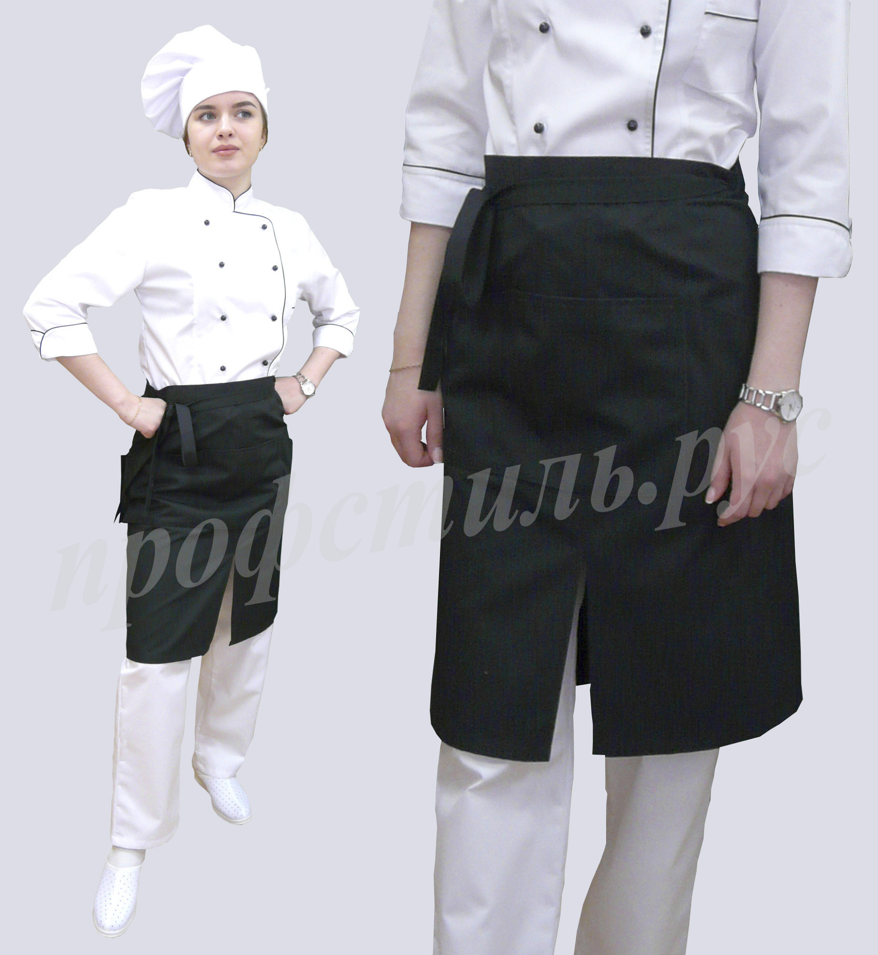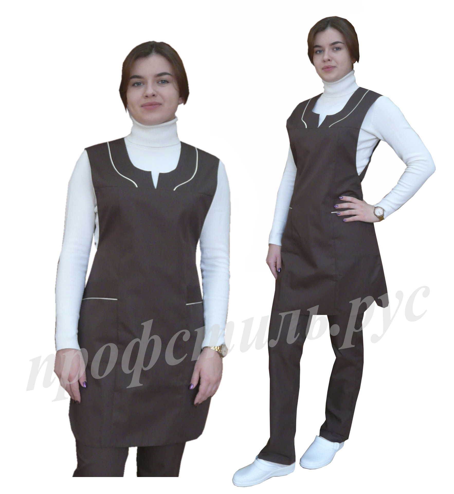 Наиболее популярная форма профессиональной одежды для работников торговли, сферы обслуживания-фартук. Простой и удобный в использовании, допускает отклонения в размерном ряде. На фартук хорошо наносится логотип. Широкий выбор модельного ряда. Хорошо сочетается с головными уборами-пилоткой, козырьком. Некоторые модели дополняются брюками, футболками.