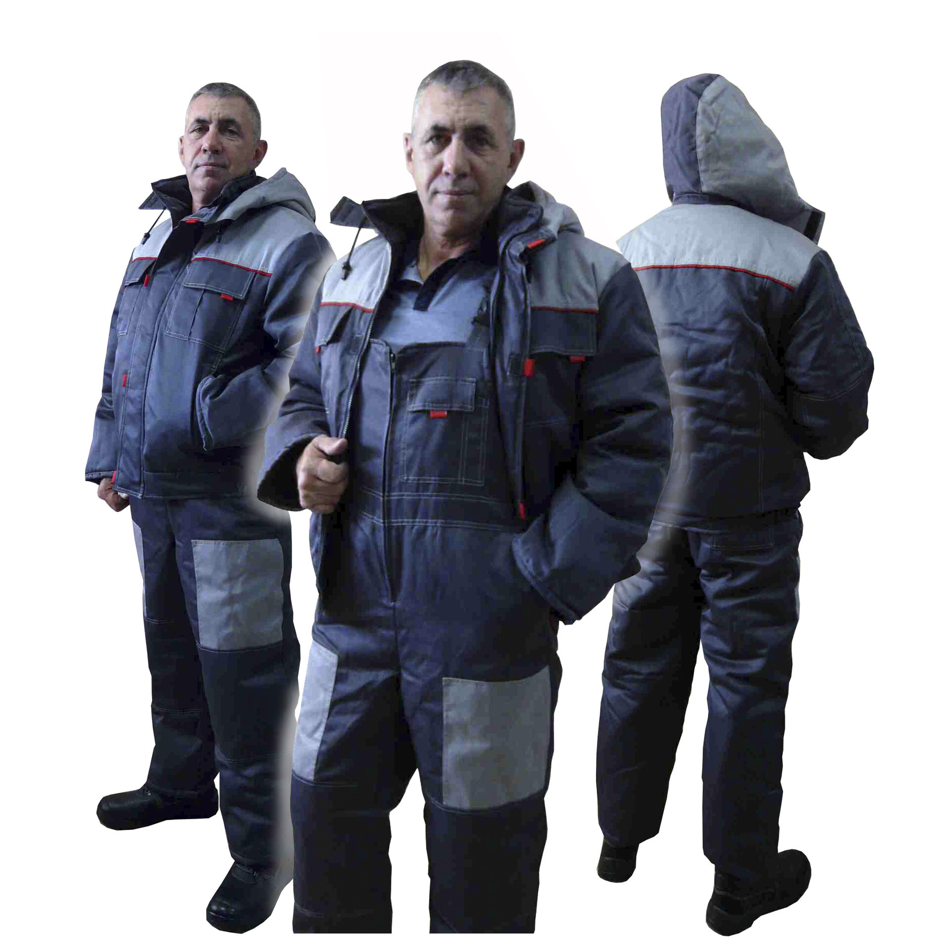Модель 2/И. Ткань "Грета" (51%хл, 49%пэ), "Оксфорд 210" (100%пэ), утеплитель синтепон 250гр/м2, размер до 70. Воротник стойка, застежка молния закрыта ветрозащитной планкой, нижние карманы прорезные с листочками. Данная модель позволяет отшить костюм в 70 размере с отличной посадкой по фигуре. Цветовая гамма, пакет утеплителя и вставки по согласованию с заказчиком.
